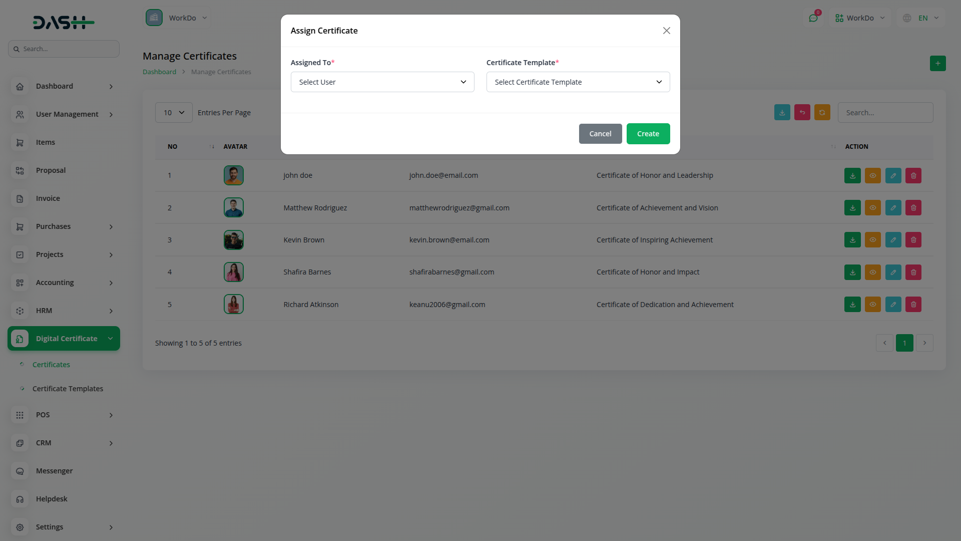 Efficiently assign certificates to specific users through an integrated system that connects with your user database for seamless recipient management. Select recipients and assign appropriate templates based on achievements while the system automatically loads customizable fields for personalization. These fields can be easily modified to personalize the certificate content before final generation, ensuring both flexibility and precision. Generate high-quality, downloadable PDF certificates that maintain professional formatting and print-ready resolution suitable for official documentation, that preserve all design elements exactly as intended.