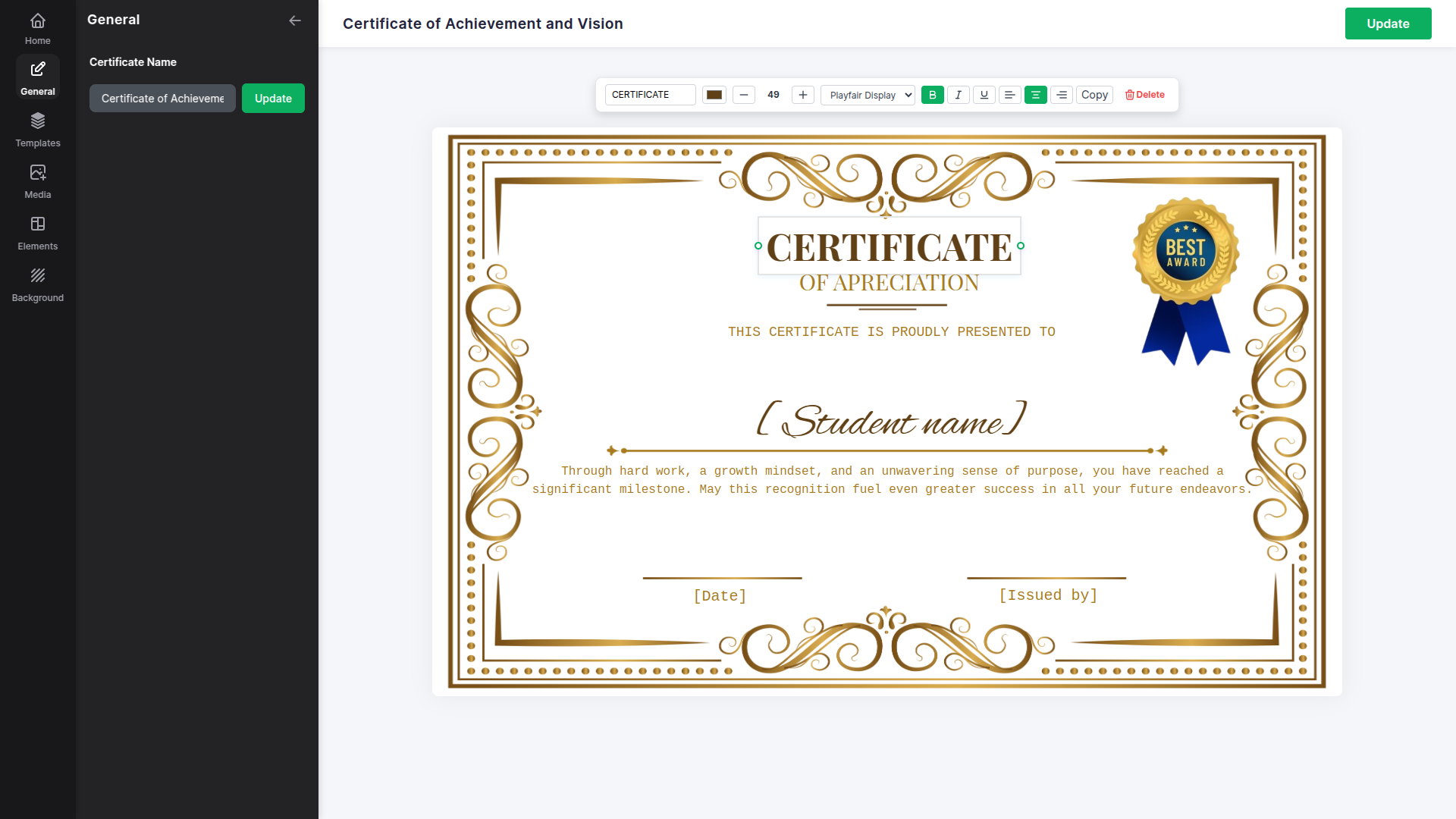 Easily create, customize, and distribute professional digital certificates for courses, achievements, and training programs with just a few clicks