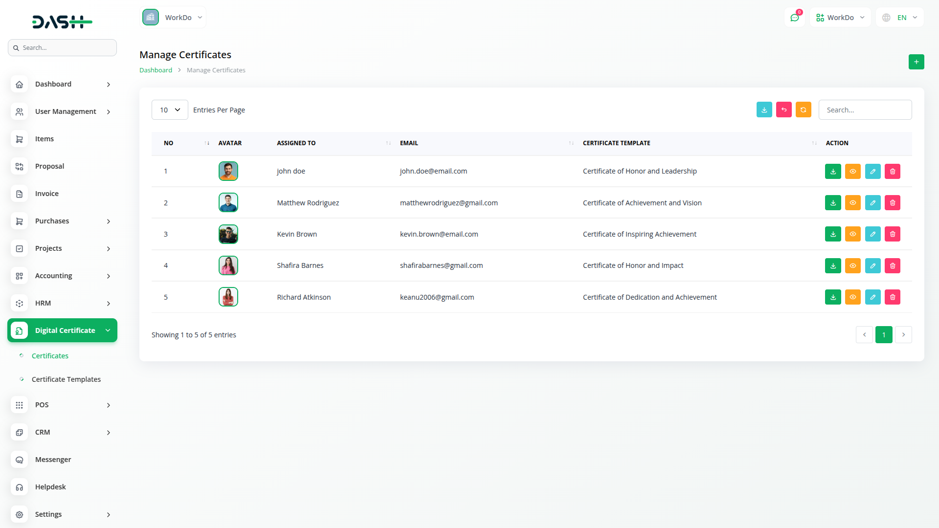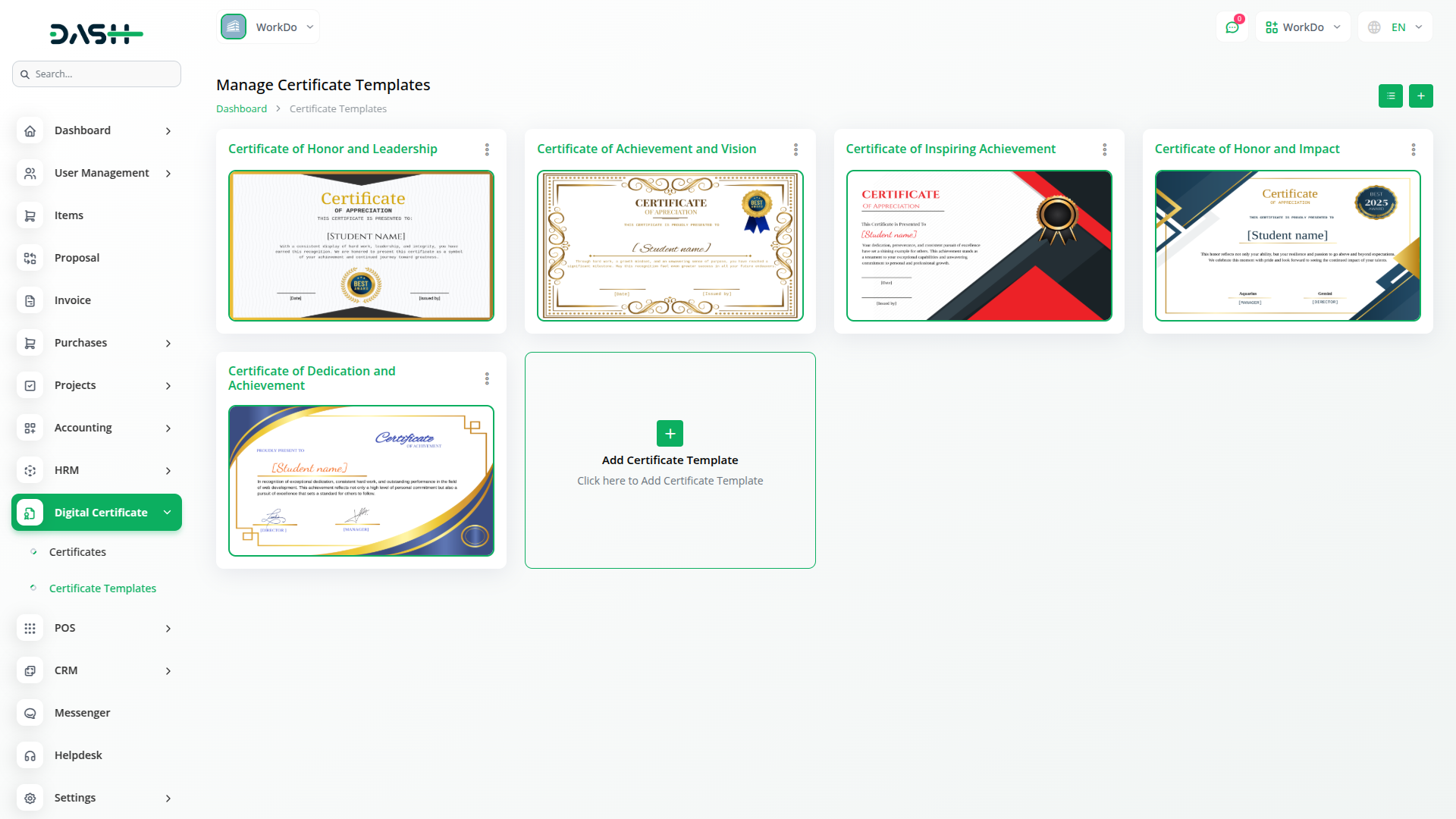 The Digital Certificate Add-On is a comprehensive platform that enables organizations to design, customize, and distribute professional digital certificates. Create custom templates with dynamic elements, manage media libraries, assign certificates to users, and generate high-quality PDF downloads for official documentation and recognition programs