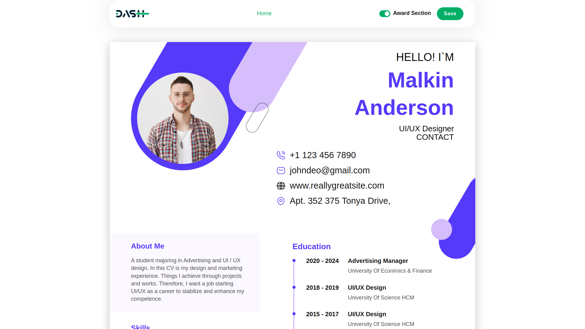 Customization is at the heart of the Dash Resume Builder. Users can easily update their resumes to reflect new skills, experiences, or career goals. The module saves previous versions, allowing for quick edits and updates without starting from scratch. This flexibility ensures that users can keep their resumes current and tailored to specific job applications, enhancing their chances of standing out to potential employers.