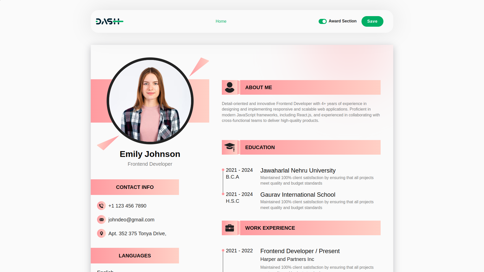 In today`s competitive job market, a standout resume is crucial for making a great first impression. The Resume Builder module of Dash SaaS is designed to help users create professional, customized resumes effortlessly. With a user-friendly interface and advanced formatting tools, this module streamlines the resume creation process, allowing users to focus on showcasing their skills and experiences.