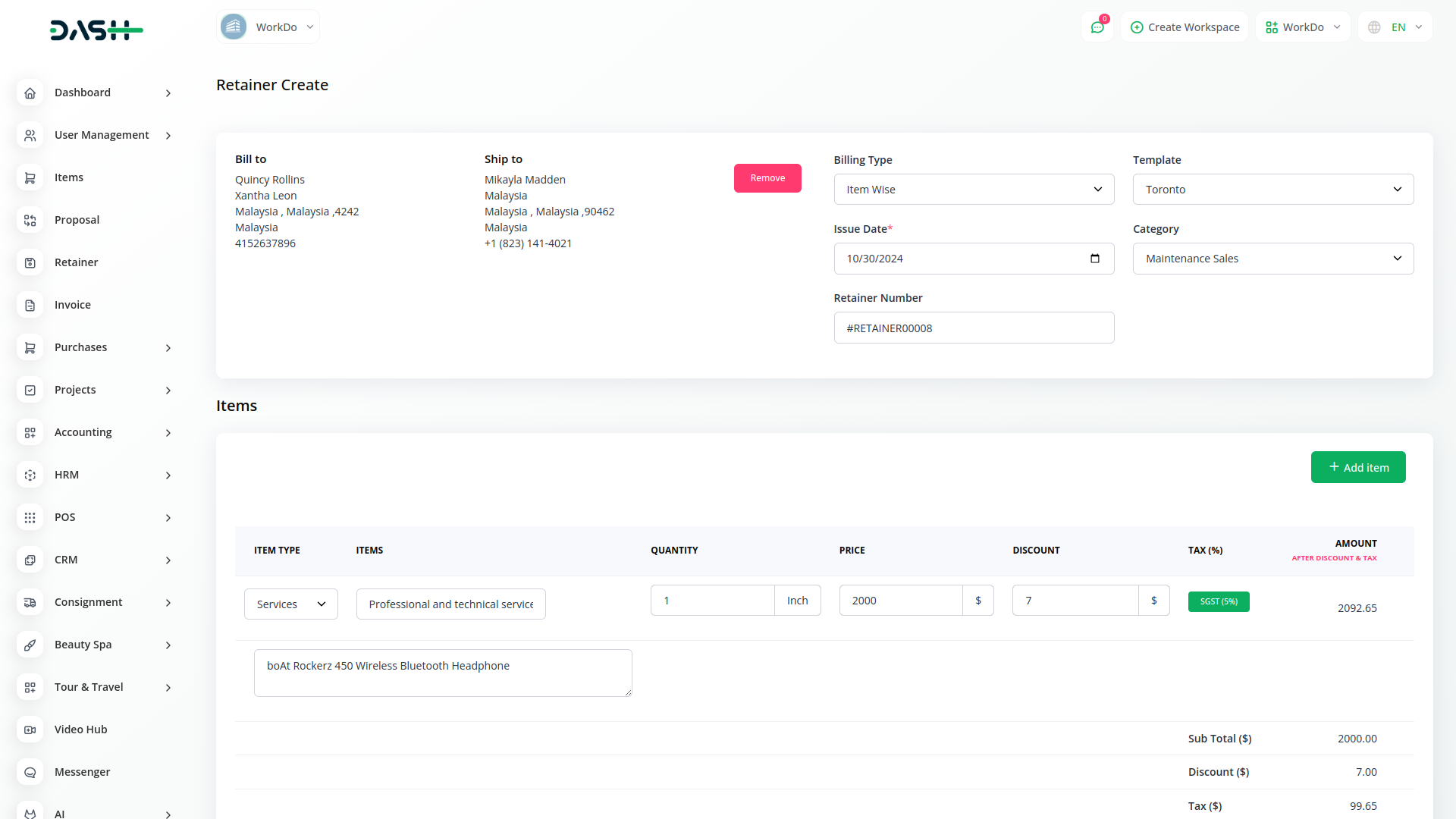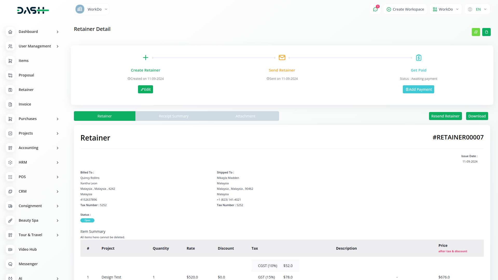 Retainer invoices are documents the firm can provide to the client to ask for funds prior to the project starting. It’s a method of securing services for use when required. In other words, it’s a form of deposit or pre-payment.