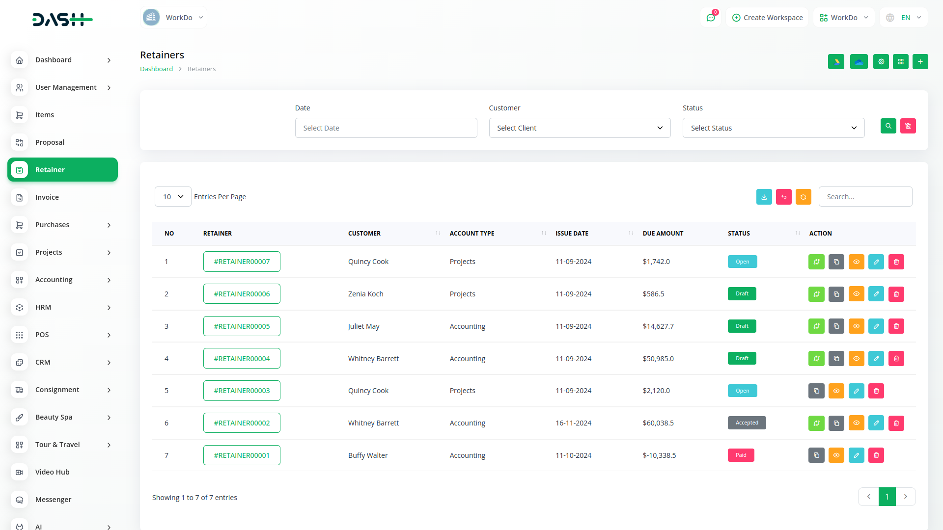 Retainer invoices are documents the firm can provide to the client to ask for funds prior to the project starting. Its a method of securing services for use when required. In other words, its a form of deposit or pre-payment.