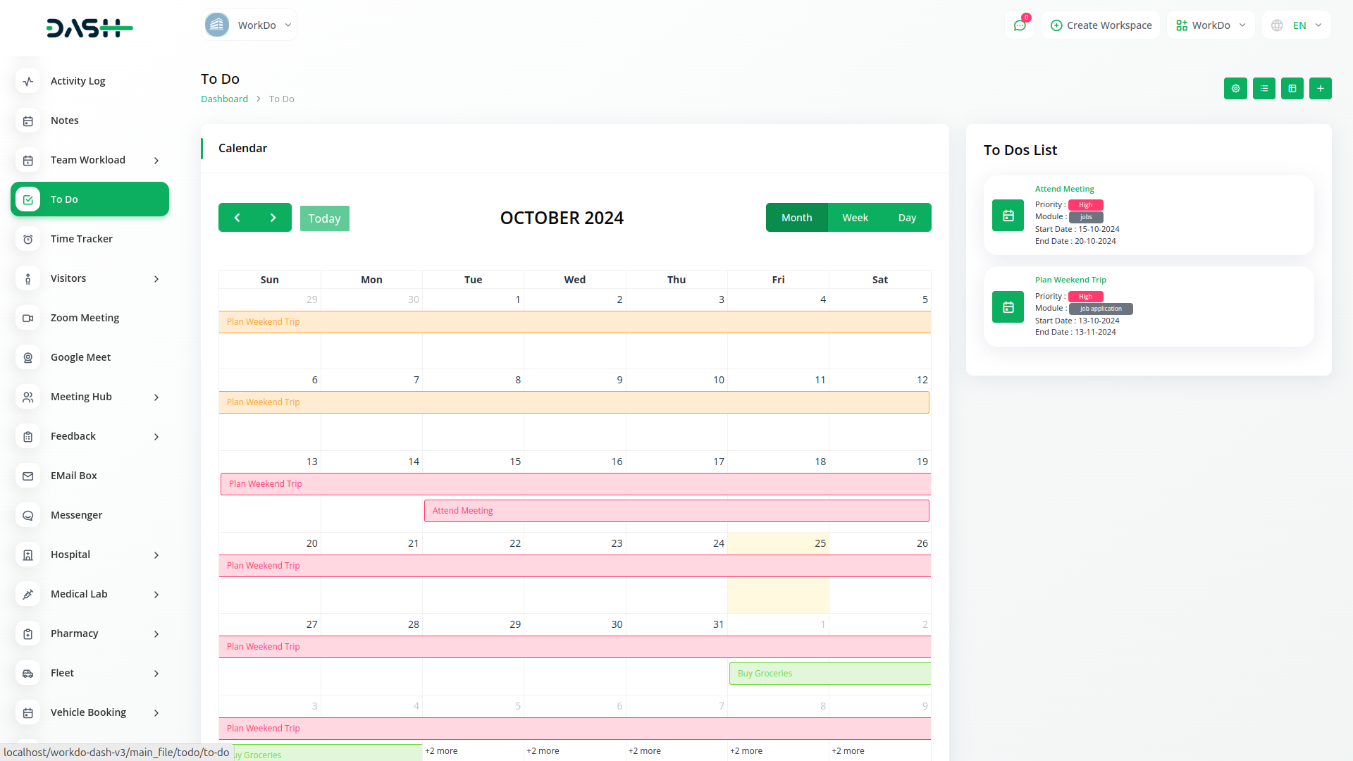 Visualize suas tarefas e compromissos com o recurso de visualização de calendário no módulo ToDo do Dash SaaS. Planeje sua agenda de forma eficaz, vendo tarefas ao lado de reuniões e prazos em um layout de calendário abrangente. Com esta ferramenta de visualização intuitiva, gerencie seu tempo de forma eficiente e priorize tarefas com base em suas datas de vencimento e importância. Mantenha-se organizado e em cima de seus compromissos com a integração perfeita de gerenciamento de tarefas e recursos de agendamento do Dash SaaS.