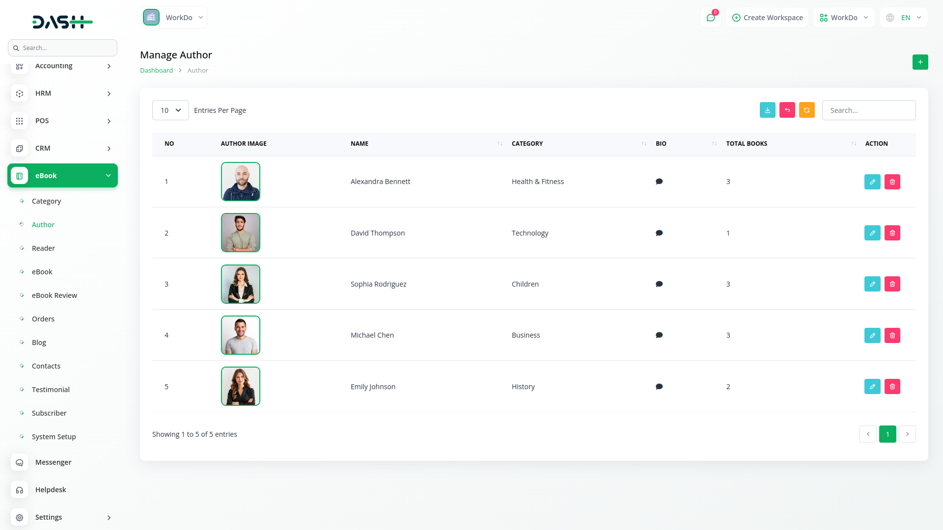 Comece sua livraria online com nossa plataforma de livros eletrônicos tudo em um criada para facilitar a venda e o gerenciamento. Organize livros com informações detalhadas, mostre perfis de autores e ofereça uma experiência de compra suave com avaliações, listas de desejos e checkout seguro. Com rastreamento em tempo real, downloads instantâneos e um poderoso painel de administração, tudo funciona em conjunto para ajudá-lo a expandir sua livraria digital sem esforço.